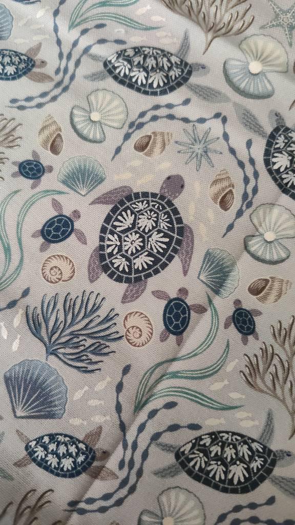 Remnant 1-Yard Ocean Pearls Sea Turtle Family on Light Mist with Pearl Fabric Yardage